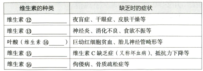 3. 维生素:不是人体细胞的主要成分,不为人体提供⑪______。