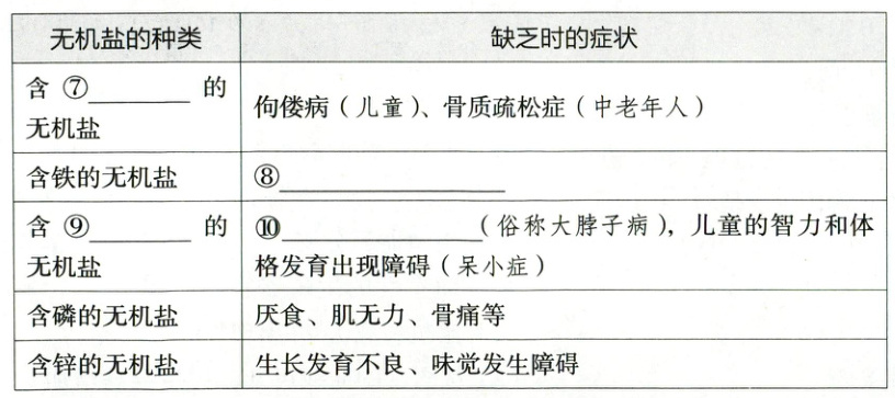 @@⑦钙 ⑧缺铁性贫血 ⑨碘 ⑩地方性甲状腺肿