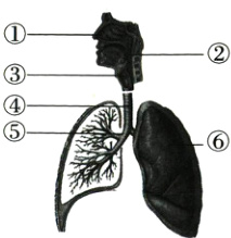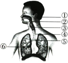 (6)痰形成的部位主要是[ ]______和⑤支气管,痰内有外来尘粒和病菌等,因此不要随地吐痰。