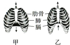 (2)图2模拟的是人体在____(填“吸气”或“呼气”)时膈肌的运动状态,此时由于膈肌处于____(填“收缩”或“舒张”)状态,膈顶部下降,胸廓的上下径____(填“扩大”或“缩小”),肺容积扩大,于是外界气体就被吸入。