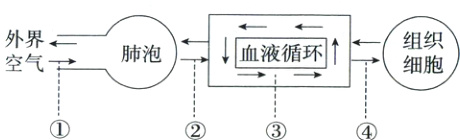 (2)呼吸道阻塞会使气体无法进出肺,首先会影响肺与外界的气体交换,进而影响到肺泡与血液之间的气体交换,最终会使组织细胞通过呼吸作用为生命活动提供的能量减少,严重时可导致死亡。