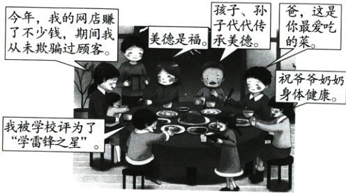(1)中华优秀传统文化蕴含着丰富的道德资源。漫画体现了哪些中华传统美德?(2分)