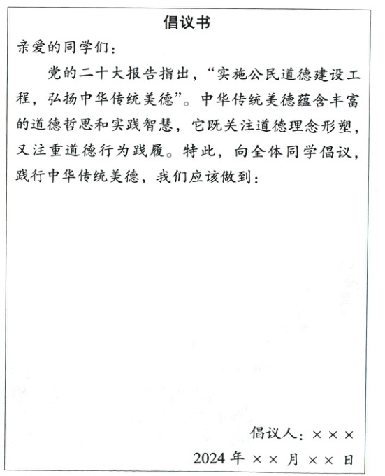 (4)参考示例:①在生活中,大力弘扬和践行自强不息、敬业乐群、扶危济困、见义勇为、孝老爱亲等中华传统美德。(2分)