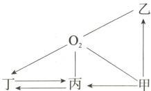 C. O₂→丁的反应体现了氧气的氧化性