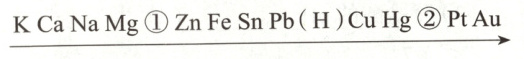 1. 金属能否与酸溶液反应以及发生反应的剧烈程度,均可说明金属活动性强弱。下图中①②处元素的符号分别为 ( )