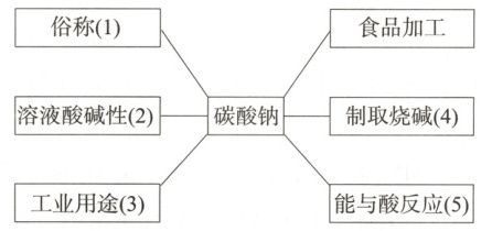 10.[2024大同一模]以典型物质为核心,进行问题的设置与整合,是我们全面认识物质性质及应用的有效途径。小明同学在小组合作学习过程中,对碳酸钠的相关问题,以结构图的形式进行了如下梳理。联系实际,回答问题: