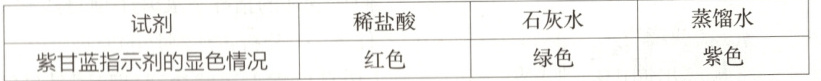 (2)ⅰ.< ⅱ.不能 石灰水和纯碱溶液均显碱性,均能使紫甘蓝指示剂显绿色 ⅲ.紫 ⅳ.分别取1 mL待测溶液于两支洁净的试管,然后滴加几滴紫甘蓝指示剂,边加边振荡,若溶液呈红色,则待测溶液为盐酸;若溶液呈绿色,则待测溶液为石灰水。