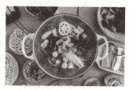 主料 鲍鱼、火腿、猪肚、鸡肉、猪蹄、鸽蛋等