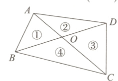 5. 如图,四边形ABCD的对角线AC,BD相交于点O,且将这个四边形分成①②③④四个三角形,若OA:OC = OB:OD,则下列结论中一定正确的是 ( )