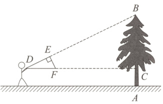 说明:在水平地面上直立一根标杆EF,观测者沿着直线BF后退到点D,使眼睛C、标杆的顶端E、旗杆的顶端A在同一直线上