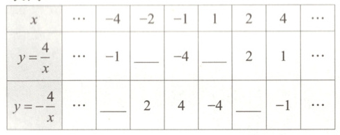 (2) 根据表格中的数据,在平面直角坐标系中画出$y = \frac{4}{x}$和$y = -\frac{4}{x}$的图象.
