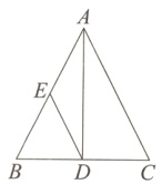 8. 如图,在△ABC中,AB = AC,AD⊥BC于点D,点E为AB的中点,连接DE,若AD = 4,tan∠DAC = $\frac{1}{2}$,则DE的长为( )