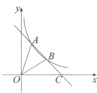 5. 如图,一次函数$y = ax + b$的图象与反比例函数$y = \frac{k}{x}$的图象在第一象限内交于点$A$、$B$,与$x$轴交于点$C$,$AB = BC$.若$\triangle OAC$的面积为8,则$k$的值为( )