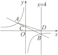 7. 如图,一次函数$y = kx + b(k\neq0)$的图象与反比例函数$y = -\frac{4}{x}$的图象交于点$A(-2,m)$和点$B$,与$y$轴交于点$C$.直线$x = 4$经过点$B$,与$x$轴交于点$D$,连接$AD$.