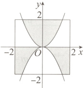 14. 如图是边长为4的正方形和函数$y = x^{2}$与$y = -x^{2}$的图象,则阴影部分的面积是______.