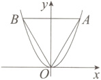 设点$A$的坐标为$(n,n^{2})(n > 0)$,则点$B$的坐标为$(-n,n^{2})$,如图,将$AB$与$y$轴的交点记为$C$,则$AB = 2n$,$AC = n$,$OC = n^{2}$.