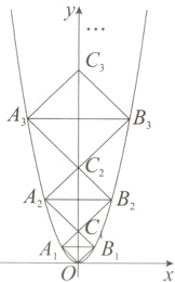 16. 如图,已知点$A_{1}$,$A_{2}$,$\cdots$,$A_{2024}$在函数$y = x^{2}$位于第二象限的图象上,点$B_{1}$,$B_{2}$,$\cdots$,$B_{2024}$在函数$y = x^{2}$位于第一象限的图象上,点$C_{1}$,$C_{2}$,$\cdots$,$C_{2024}$在$y$轴正半轴上,四边形$OA_{1}C_{1}B_{1}$,$C_{1}A_{2}C_{2}B_{2}$,$\cdots$,$C_{2023}A_{2024}C_{2024}B_{2024}$都是正方形.