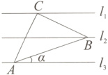 16. [推理能力·2024运城期末]如图,已知l1//l2//l3,相邻两条平行直线间的距离相等,△ABC的三个顶点分别在这三条平行直线上,且∠ACB = 90°,∠CAB = 45°,则tan α的值是________.