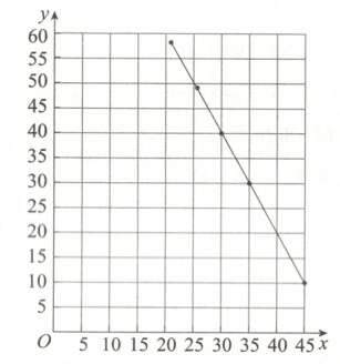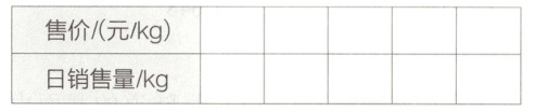 (2)根据数据在平面直角坐标系中描点、连线,直观表示出日销售量y(单位:kg)随售价x(单位:元/kg)变化的规律,并写出日销售量与售价的关系。