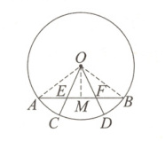 14. 如图,在⊙O中,半径OC,OD分别交弦AB于点E,F,且$OE = OF$.