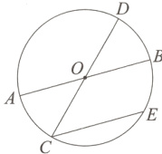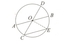 13. 如图,在⊙O中,AB、CD是直径,$CE// AB$且交圆于点E,求证:$\overset{\frown}{BD}=\overset{\frown}{BE}$.