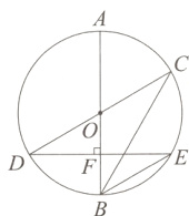 14. 如图,已知在⊙O中,AB,CD为直径,弦DE⊥AB于点F,连接BC,BE. 若DC//BE,求∠C的度数.