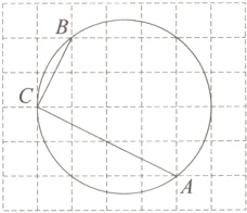 解:如图,连接AB,连接点C与格点D,CD交圆于点M,M即为所求点.
