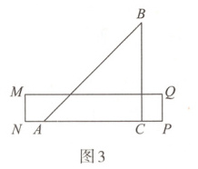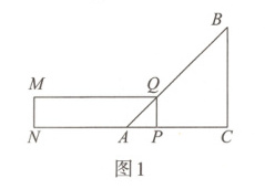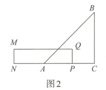 15.[分类讨论]如图,已知$Rt\triangle ABC$中,$\angle C = 90^{\circ}$,$AC = BC = 8$cm,矩形MNPQ中,$MQ = NP = 9$cm,$MN = PQ = 2$cm,点P和点A重合,NP和AC在同一条直线上,$Rt\triangle ABC$不动,矩形MNPQ沿射线NP以每秒1 cm的速度向右移动,设移动$x(0 < x \leq 9)$s时,矩形MNPQ与$\triangle ABC$重叠部分的面积为$y$cm²,求y与x之间的函数关系式.