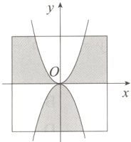 14. [转化思想]如图,正方形的边长为4,以正方形中心为原点建立平面直角坐标系,作出函数$y = 2x^{2}$与$y = -2x^{2}$的图象,则阴影部分的面积是________.