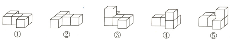 (1)如下图,( )和( )从前面看到的图形相同,( )和( )从前面看到的图形也相同。( )、( )和( )从上面看到的图形相同。( )和( )从右面看到的图形是