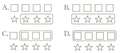 2. (新题型) 然然把4×(□ + ☆)错写成了4×□ + ☆,她得到的结果比正确的结果小。如果把相差的部分在图上圈出来,那么下列圈法中正确的是( )。