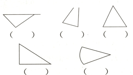 1. 下面哪些图形是三角形?在( )里画“〇”。