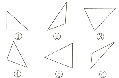 直角三角形:①④ 锐角三角形:③⑤