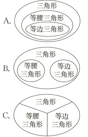 【解析】有两条边相等的三角形叫作等腰三角形,等边三角形是等腰三角形的特殊情况。