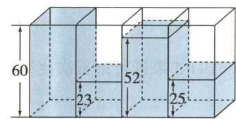 (60 + 23 + 52 + 25)÷4 = 40(厘米) 会发生水流动的现象,直到整个水槽中的水面高度达到40厘米。(合理即可)