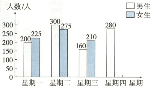 (3)(答案不唯一)男生在这四天里去阅览室阅读的平均人数是多少人?(200 + 300 + 160 + 280)÷4 = 235(人)