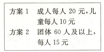 2. 广州南沙天后宫集北京故宫的风格和南京中山陵的气势于一体,其规模是现今世界同类建筑之最,被誉为“天下天后第一宫”。46位家长计划带领28名儿童去广州南沙天后宫游玩,下面是星光旅行社推出的两种方案。请你帮他们算一算,哪种方案合算?