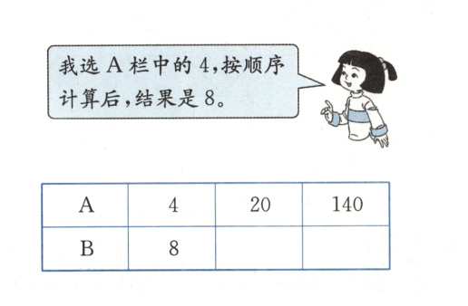 [解析]本题考查四则混合运算的运算顺序,主要体现的素养是运算能力。根据要求按顺序计算,并将结果填入B栏中。