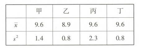 解析 由表格知,甲、丙、丁测试成绩的平均数较高,而丁成绩的方差小,成绩更稳定,