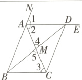 已知:如图,△ABC中,AB = AC,AE平分△ABC的外角∠CAN,点M是AC的中点,连接BM并延长交AE于点D,连接CD.