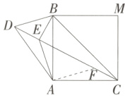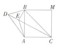 19. [答案含评分细则](2024北京大兴期末)(8分)已知:如图,四边形ABMC是正方形,AD = AC,∠BAD = α(0°<α<90°),连接DB,DC,BC.