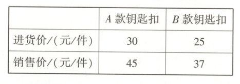 (1)网店第一次用850元购进$A、B$两款钥匙扣共30件,求两款钥匙扣分别购进的件数.