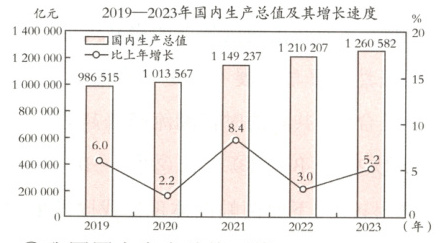 ①我国国内生产总值下降