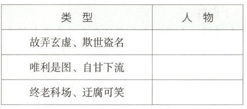 (1)[人物形象]“儒林”指封建社会里“读书人”或“士人”这一群体,小说刻画了大批“士人”,他们的形象各不相同,请根据“类型”写出对应的代表人物。(填选项)