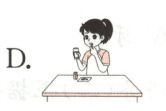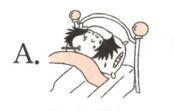 三、May发烧了,她还嗓子疼,妈妈带她去看医生。选择正确的选项完成对话。