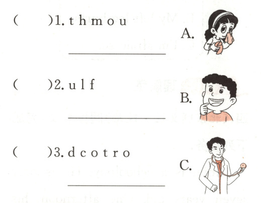 一、将所给字母重新排列,组成一个单词,将单词写在横线上,并选择相应的图片。