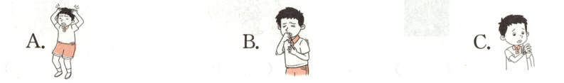 二、(北京房山区)两个小朋友今天去看病了。读信息卡,根据卡片内容选择合适的选项,将其标号填入题前括号内。