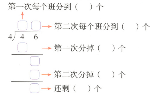 (2)$46\div4 = 11$(个)$\cdots\cdots2$(个)