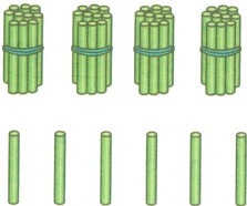 (1)上体育课时,老师把这些羽毛球平均分给两个班使用,每个班分到多少个羽毛球?用小棒代替羽毛球圈一圈,分一分,再根据分的过程填一填。