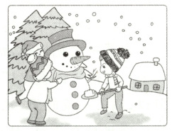 示例:天空中飘着雪花,大地好似盖上了一层厚厚的棉被,三个小朋友都戴着厚实的帽子,穿着厚厚的棉衣,他们开心地跑到雪地里,不一会儿就堆出了一个漂亮的雪人。